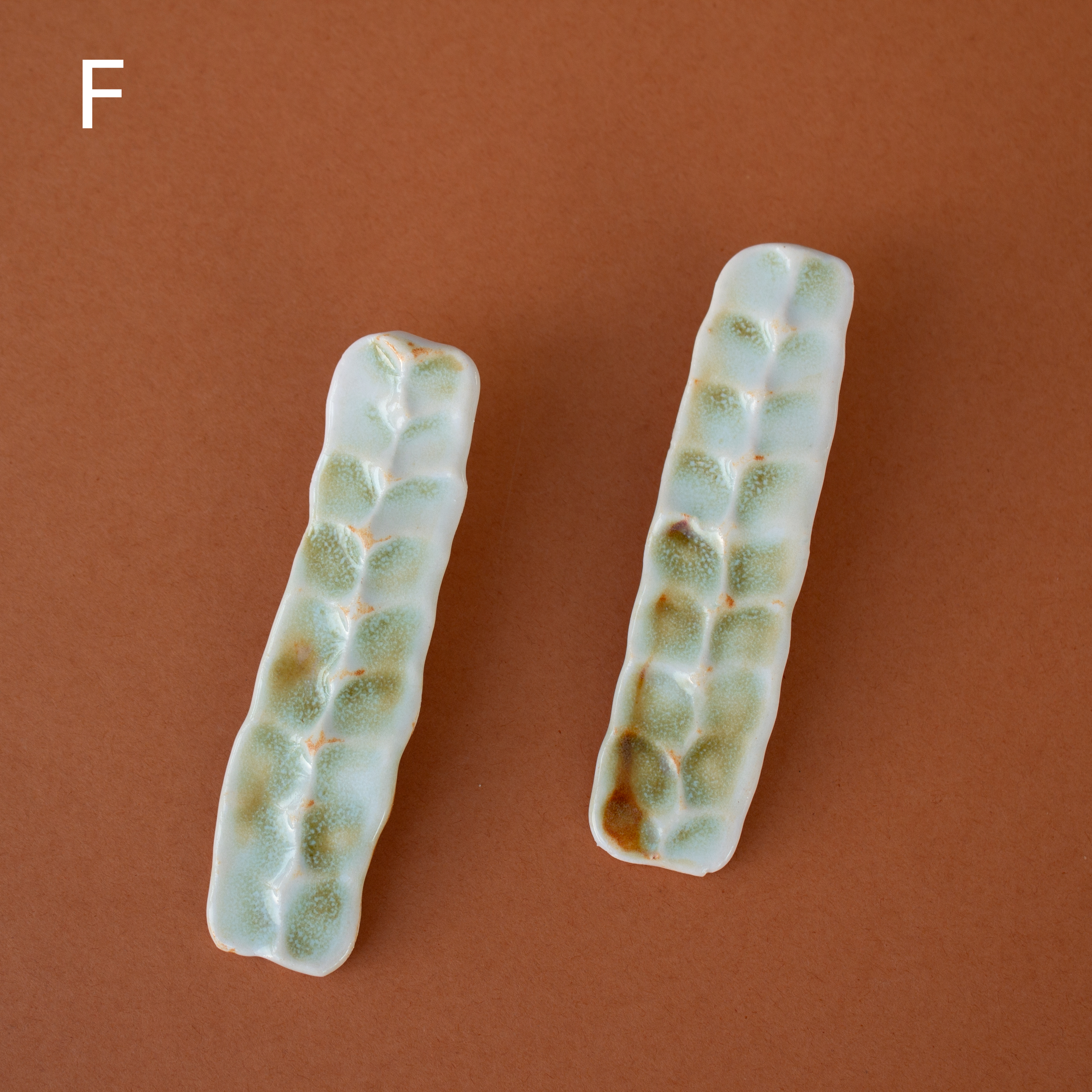 One-of-a-kind glazed ceramic on titanium posts